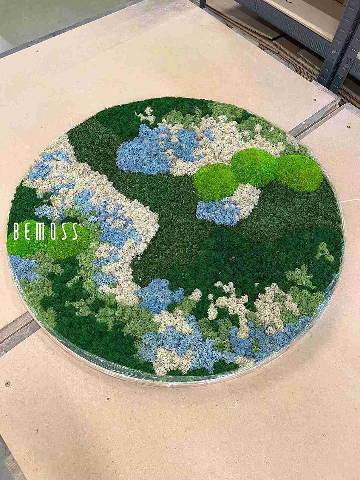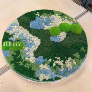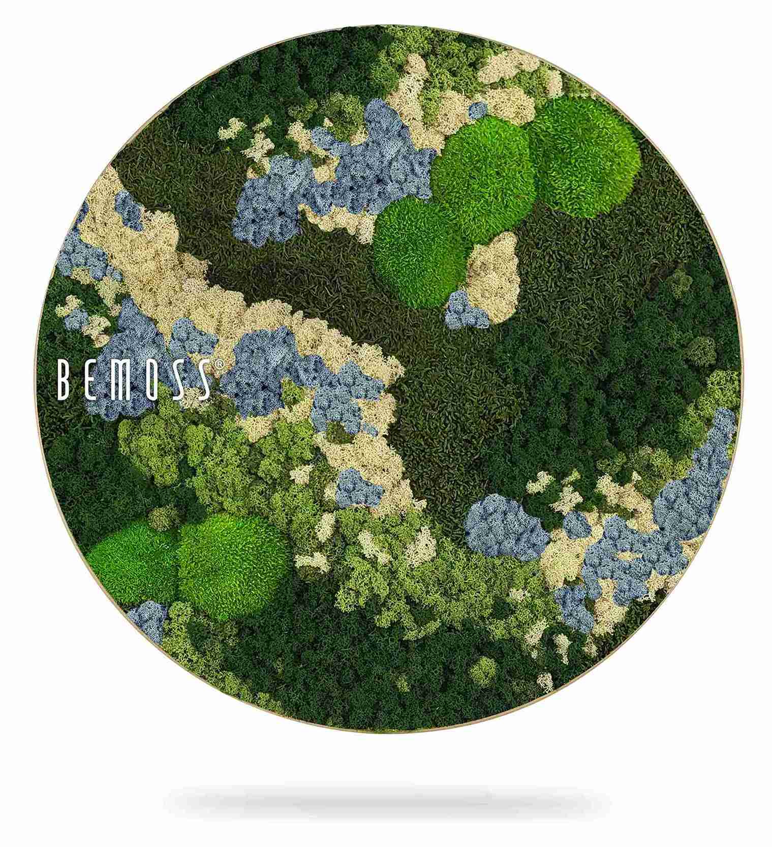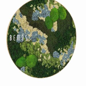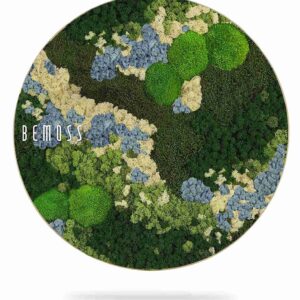 Le tableau de mousse rond BEMOSS® ORTHO ICE vous séduira par sa palette de couleurs évoquant les paysages nordiques. De douces collines de mousse stabilisée dans des tons de vert foncé, vert clair et bleu pâle sont complétées par des textures rappelant des scènes naturelles gelées. Ce design unique inspire la sérénité et apporte harmonie et style à tout intérieur.
