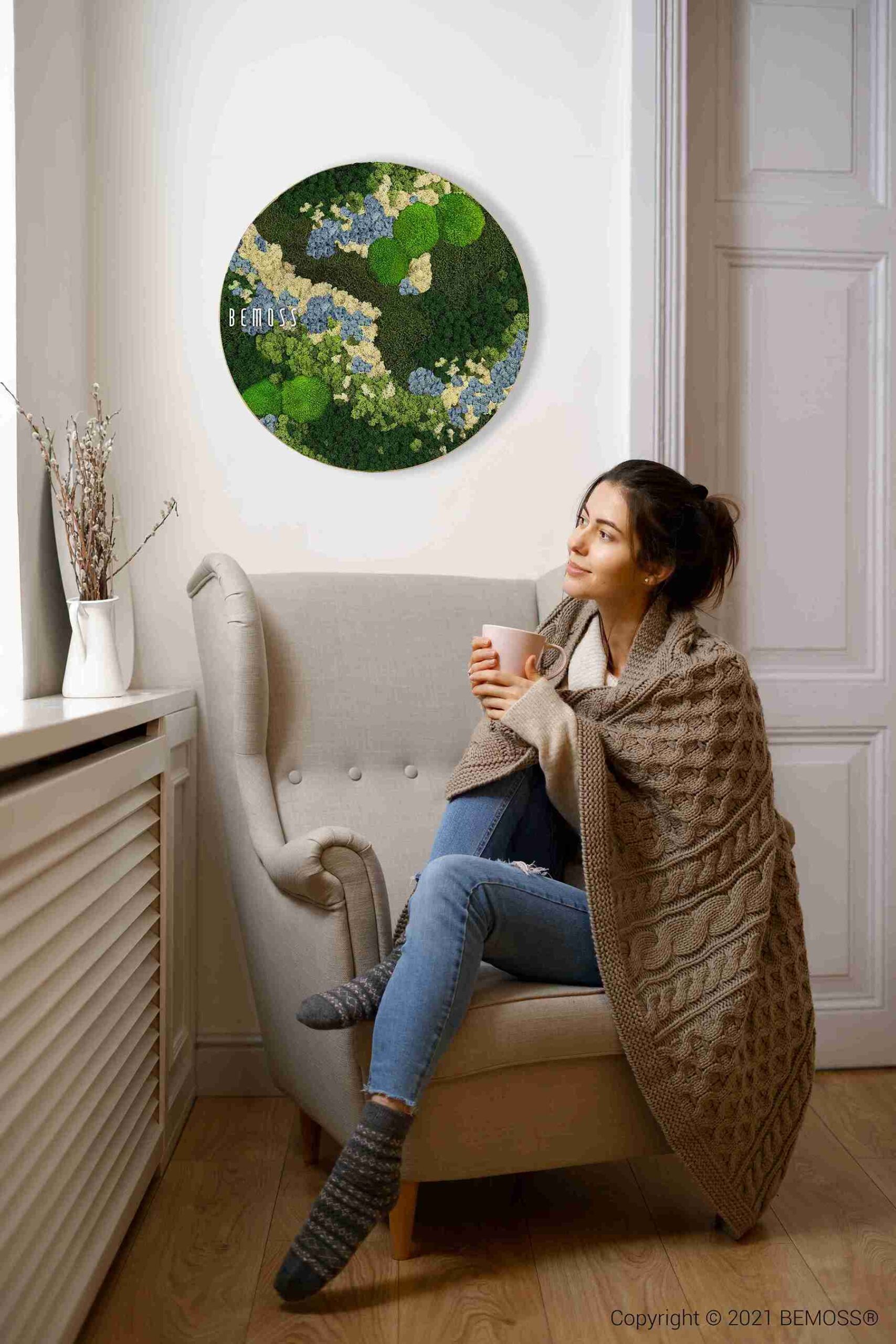 Le tableau de mousse rond BEMOSS® ORTHO ICE est un accessoire élégant qui apporte une touche de nature à votre espace. La combinaison de teintes froides de mousse stabilisée et de textures délicates crée un aspect unique rappelant un paysage glacé. Écologique et sans entretien, ce tableau est le choix parfait pour rendre votre intérieur plus chaleureux.